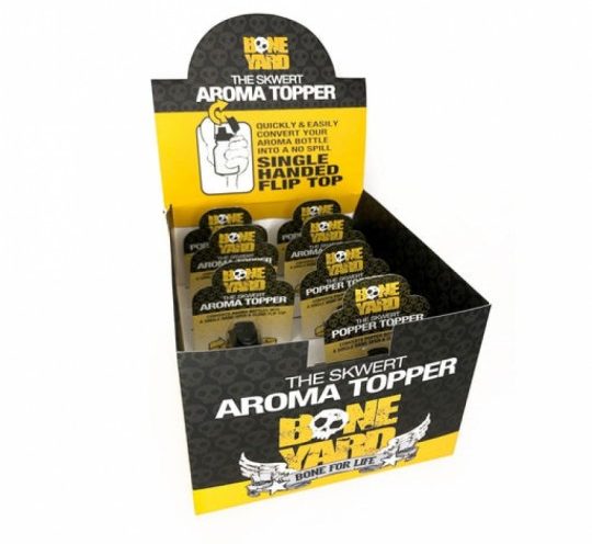 El Patent Pending Popper/Aroma Topper convierte su botella popper en una tapa abatible con una sola mano. Se acabó la resbaladiza batalla a dos manos con la botella. En el pasado, abrir la botella requería dos manos, mantener el control del tapón extraíble era siempre un desafío y luego enroscar el tapón de nuevo, ¡todo mientras tenía cosas más importantes en las que concentrarse! Con los Toppers solo tiene que utilizar el pulgar para abrir y cerrar el tapón y conseguir un cierre hermético. Ayuda a evitar derrames, manchas y desperdicios. Se adaptan a la mayoría de las botellas tradicionales de popper.